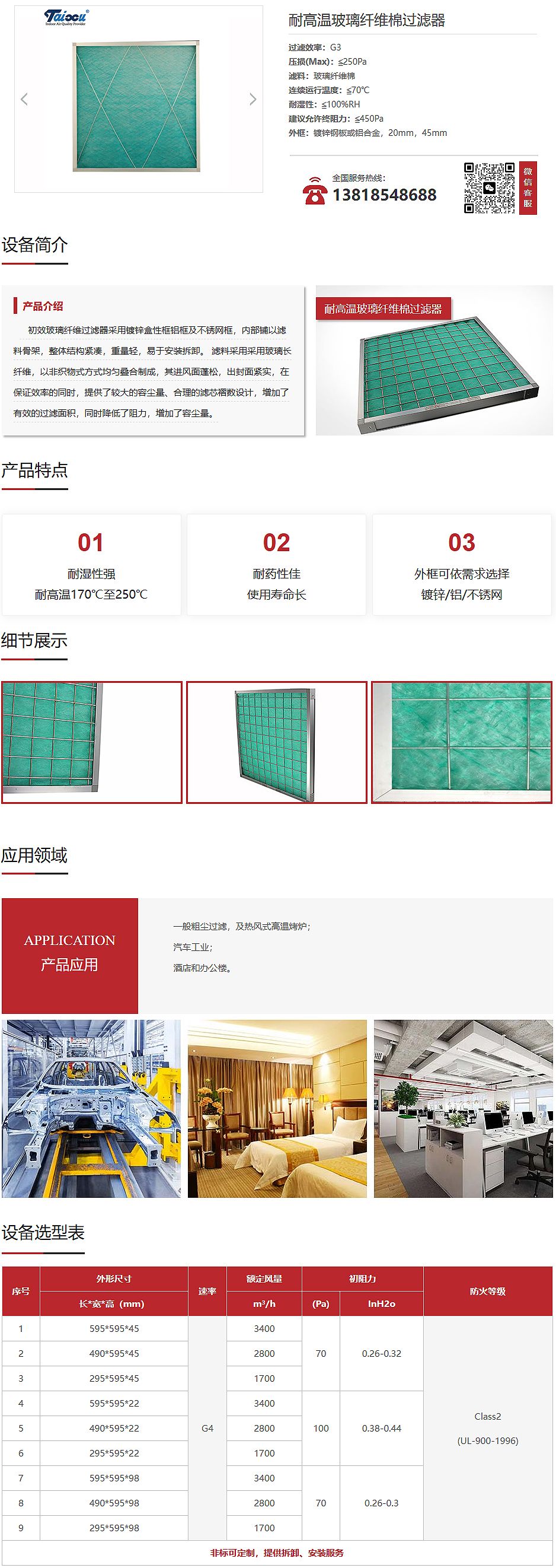 耐高温型玻璃纤维滤网、玻纤纸框、自动卷取、不织布袋型过滤器